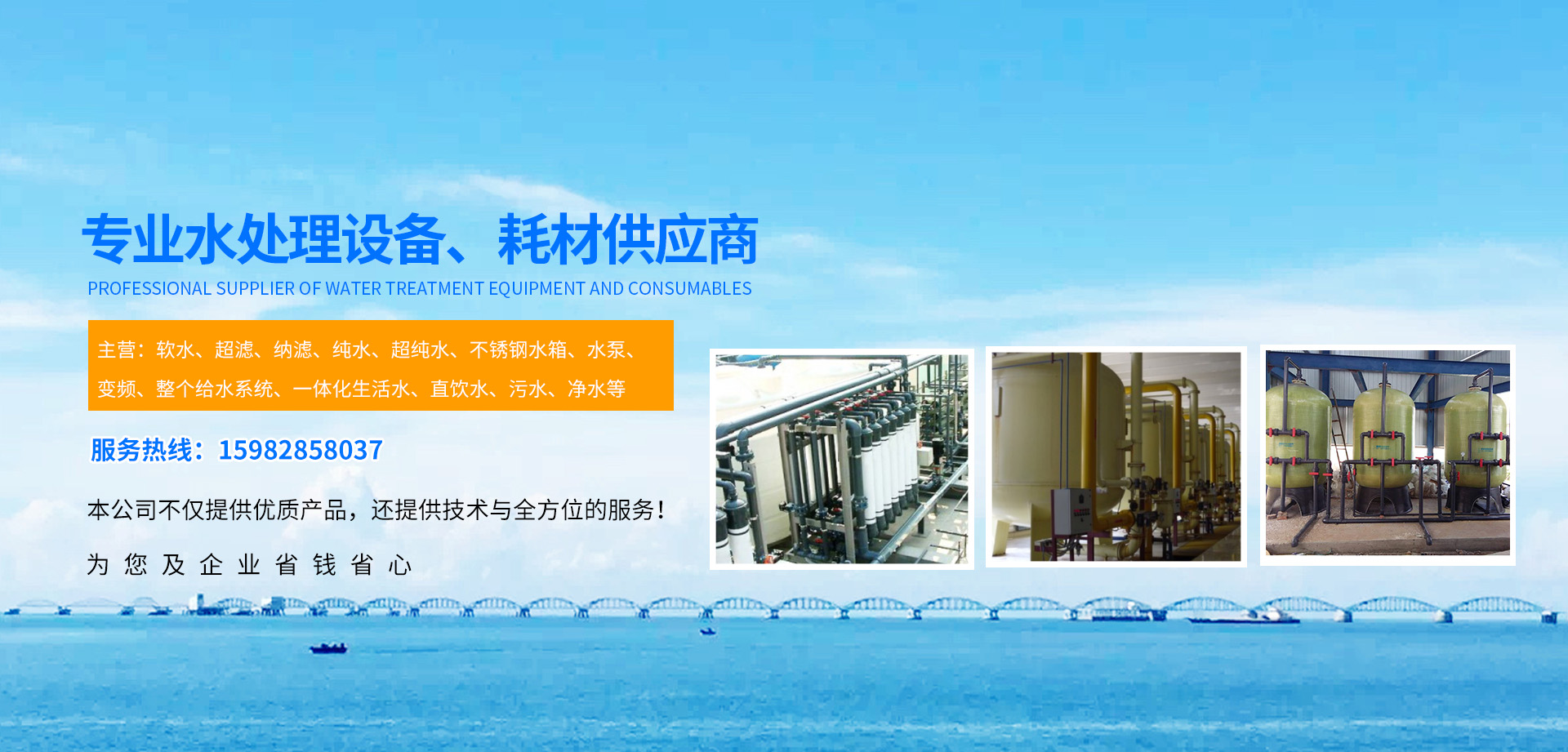 主要經營范圍: 1、軟水(平面閥、流量、時間、手動、浮動床、PLC等控制) 2、超濾、納濾、純水(RO)、超純水(EDI)等可按需定制 3、訂做不銹鋼圓水箱、組合式水箱(含保溫),及異型加工 4、各類泵、定壓補水、二供水(變頻及相關控制工程)設備與工程